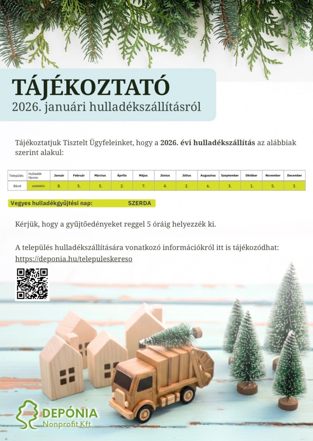 TÁJÉKOZTATÓ 2026. januári hulladékszállításról